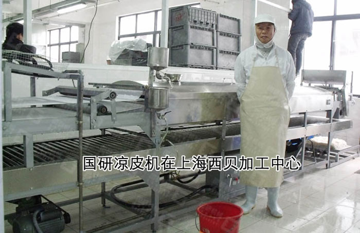 近来有媒体调查后发现与2000年相比,如今一份最普通的凉皮价格已上涨至六元以上,除去经济发展推动物价提升,近年来调价主要因素是人工成本增高。以陕西凉皮为例,使用人工制作需要经历五六道洗面筋工序,将所得面糊静置分层后倒掉上层清水,倒入模具蒸熟,随后晾凉取出切条。凉皮的制作过程需人工不停揉搓面粉,搬弄器具,蒸汽温度高,人工较为辛苦,在劳动力成本愈发高涨的现今,愿意做这种体力活的人更是难以雇到!这就急需自动凉皮机的助力,从生产力来看,人工制作凉皮少说需要一天的时间进行制作,自动凉皮机却能够在一小时内完成上千斤的产品,生产效率大大提高。国研凉皮生产线可从和面、洗面、储桨、搅拌抽桨、刮桨、蒸片、切条、冷却输送、定长切断到成品流程生产,人工只需要物料转移和收凉皮即可。
