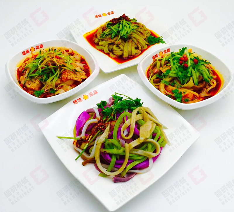 在经济高速发展和食品越来越多元化的今天,凉皮机如果只能生产凉皮一种产品将难以在市场上立足。国研多功能河粉机可根据不同的配置(例如可加装拉肠粉机头、卷粉机头、自动切片,自动切条等多种方式)和原料出产不同样式的产品,可直接倒入面粉打桨就可生产出面皮,酿皮;面粉经过洗面后可生产出凉皮和面筋;大米磨桨则可生产河粉、潮汕粿条、江西烫皮、贵州卷筒粉、云南切粉、汉中米皮、綦江米粉、筷子粉等;除此之外还能生产以玉米、红薯、绿豆等淀粉类粉皮、扁粉、拉皮等等产品。国研多功能河粉机真正实现一机多用,适合不同客户需求,销售市场更广阔!
